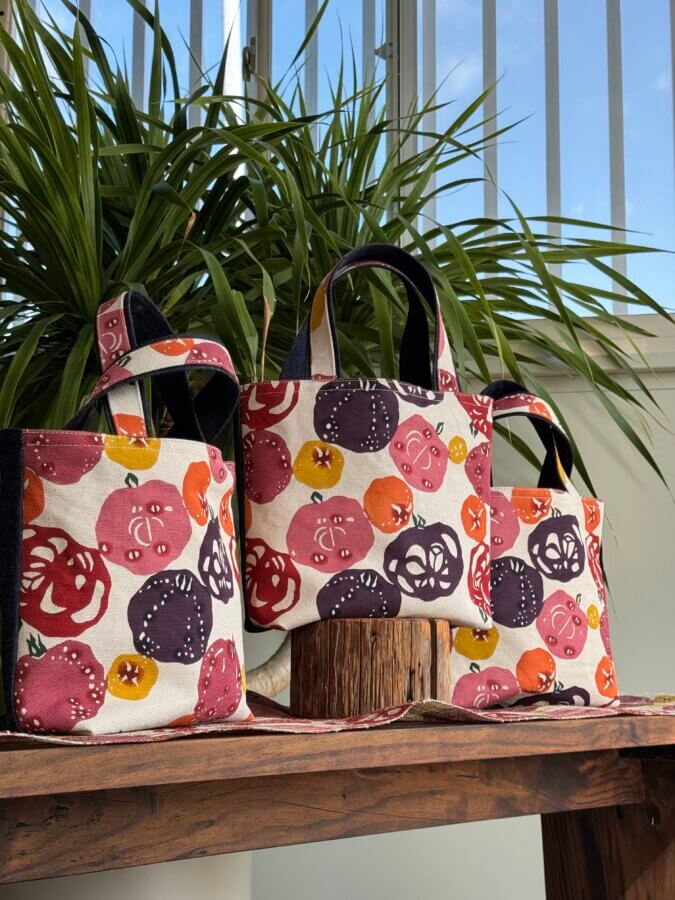 アセロラ柄ミニトートバックも仕上がっています。沖縄土産や日常使いにぜひ、お手に取ってご覧ください。